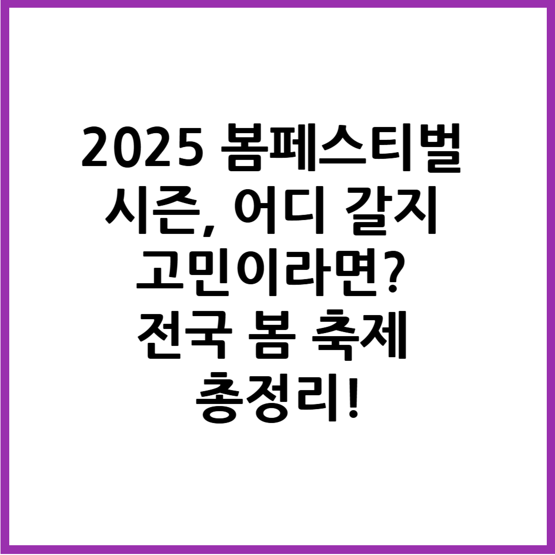 오늘은 2025년 봄을 더욱 특별하게 만들어줄 국내 대표 봄 페스티벌 일정과 추천 장소를 정리해 드릴게요. 가족, 연인, 친구 누구와 가도 만족도 100%!