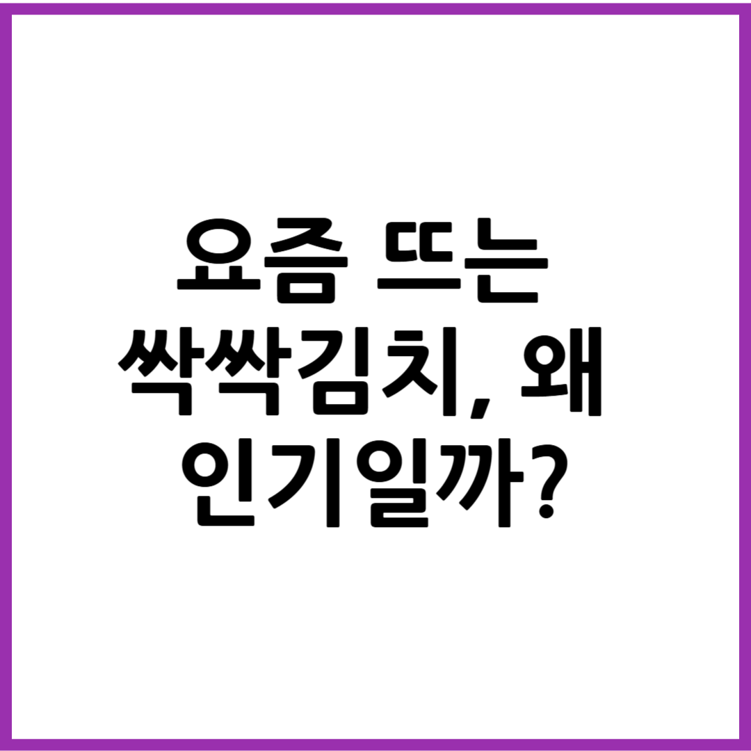 MZ세대의 김치 사랑! 싹싹 비벼 먹는 ‘싹싹 김치’가 SNS에서 대세로 떠오르고 있어요. 빠르게 싹싹 김치를 원하시면 아래 버튼에서 확인하세요.